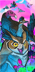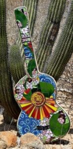 The six art pieces below were selected for Art Stop 2025 . Each artwork has a designated bus stop shelter where it will be on display through the end of the year. Click on the photo to see more information about the artist and their artwork.