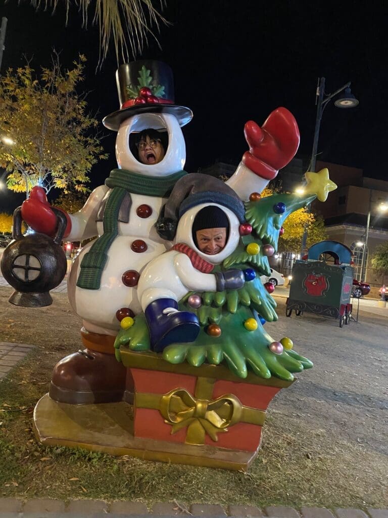 If you’ve ever doubted the power of public art, take a trip downtown to the Plaza de Las Cruces during the holidays and observe children and adults playing and laughing around the oversized Christmas gifts, snowmen, penguins, sleds, the Polar Express, and taking silly (and serious) selfies in front of the giant Christmas tree to share on social media.
