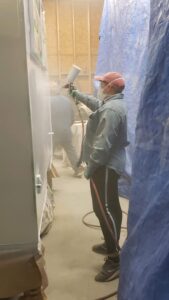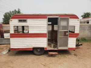 Ruben’s daughter painting the camper with Ruben in background.