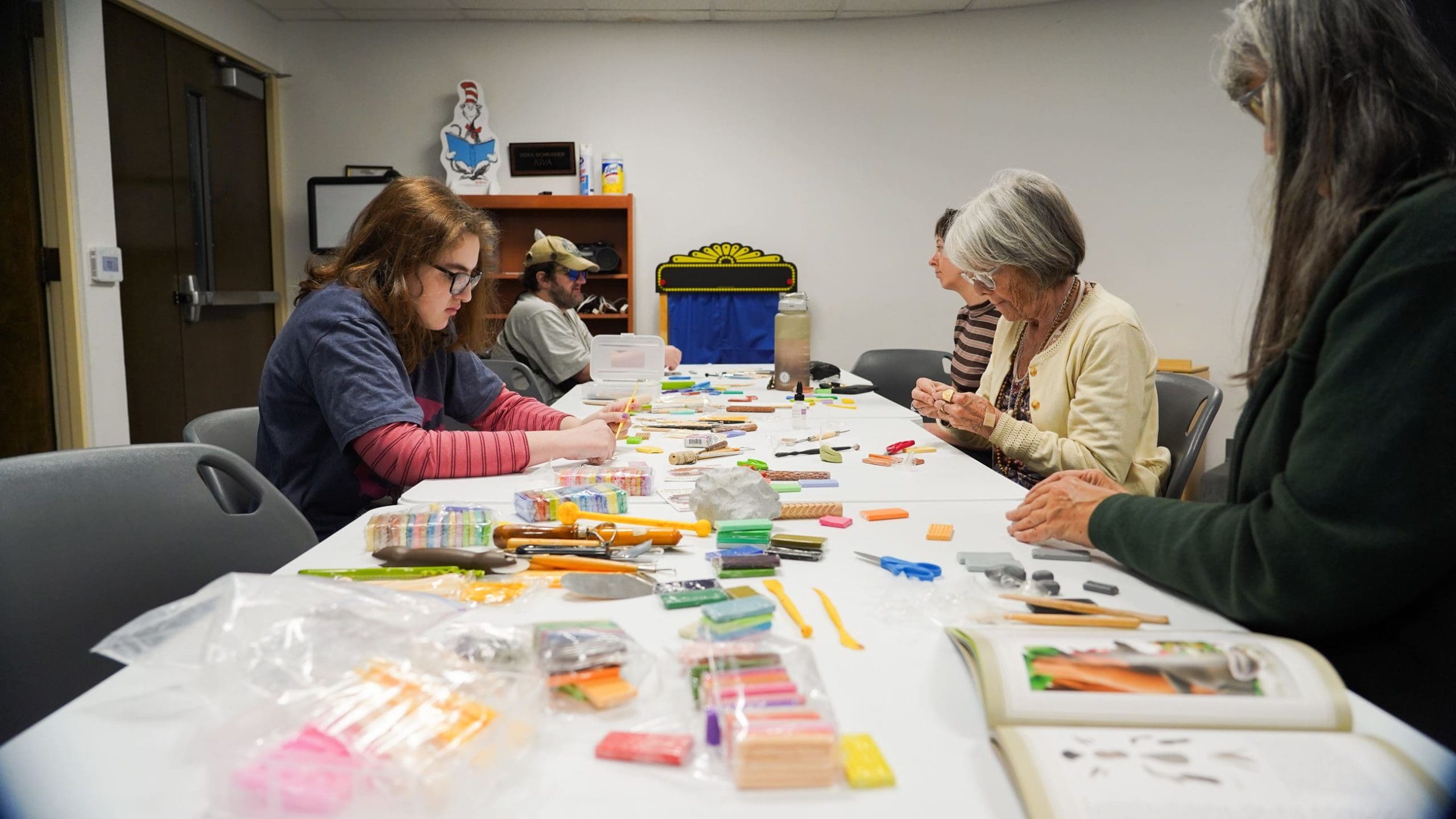Clay workshop in the Ask ALICE makerspace Classes offered under Ask ALICE are hands-on creative arts and crafts taught by artists in the Thomas Branigan Memorial Library makerspace. The library has also created a Library of Things that features items that can be borrowed with a library card to use at home, such as cake pans, crafting supplies, and sewing machines.