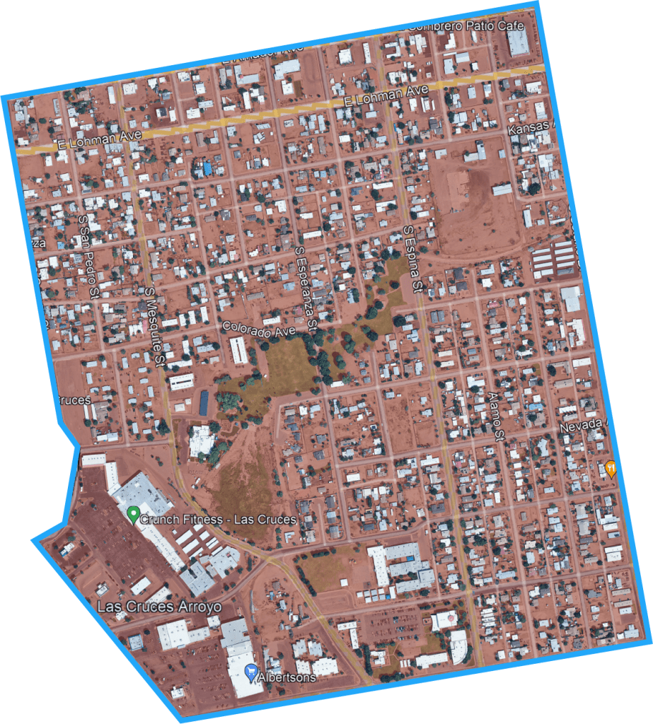 The City of Las Cruces is currently implementing the Lift Up Las Cruces program in the neighborhood that is bordered on the north by E. Amador Avenue, the south by Idaho Avenue, the west by El Paseo Road/S. Campo Street, and the east by Solano Drive. You can view a more accurate map below to see the specific boundaries.