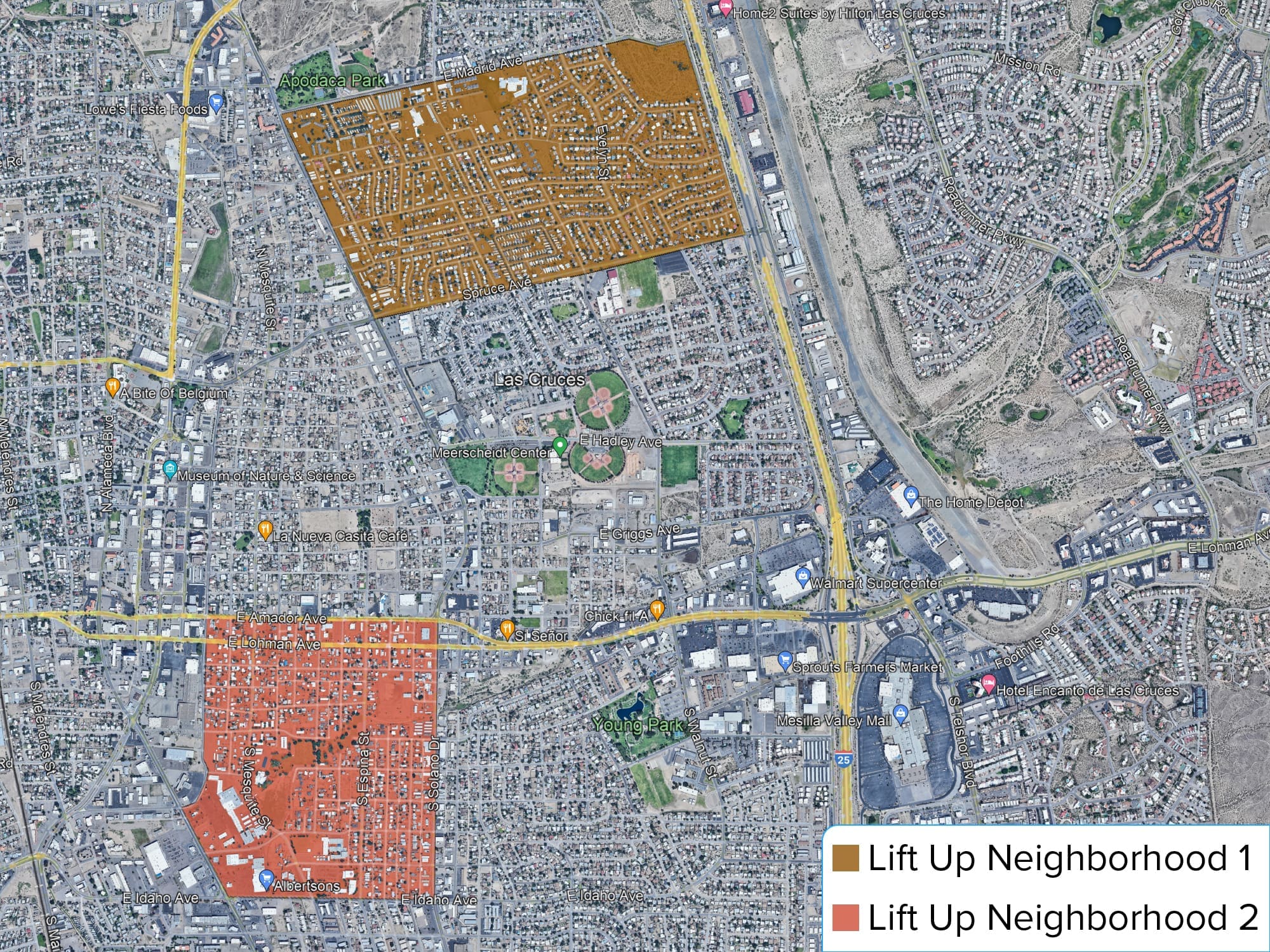 Lift Up Las Cruces is currently in the neighborhood that is bordered on the north by E. Amador Avenue, the south by Idaho Avenue, and the west by El Paseo Road/S. Campo Street, and the east by Solano Drive. You can view a more accurate map below to see the specific boundaries.