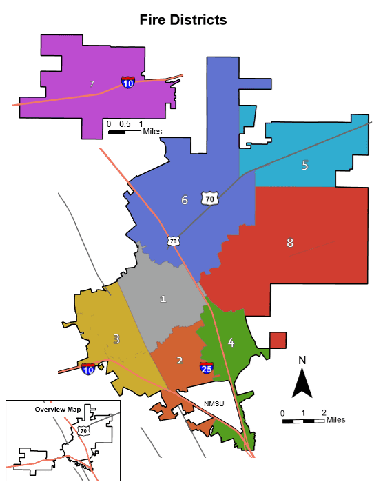 The Las Cruces Fire Department currently has 8 Stations with 8 engines, 2 aerial apparatus, 2 ARVs, and 3 Squads with the ability to transport patients.